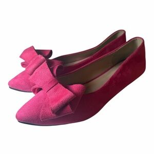 Pink Faux Suede Ballet Flats Bow Pointed Toe Slip Ons Women 8.5. These darling shoes are in great pre-owned condition. Light wear/residue on outsoles.
