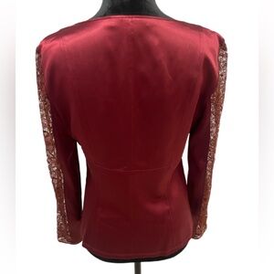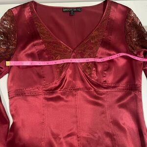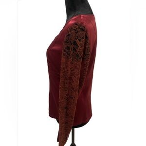 EUC Lafayette 148 Burgundy Silk Lace Sleeve Women's Top- size 6