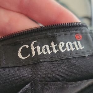 Chic black crossbody bag with playful fringe. Features red and white patterned accents. Ideal for a stylish, bohemian look.