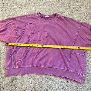 Easel Purple Crew Neck Sweater with Floral Stitching
