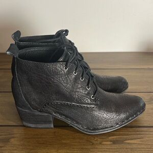Fanylrobin + Free people black leather lace up heeled ankle booties size 7