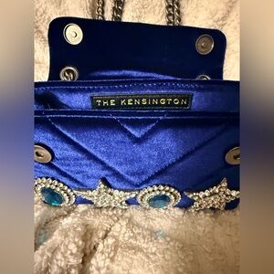 Kurt Geiger NWOT Elegant Blue Velvet Women's Crossbody Bag with Crystal Accents