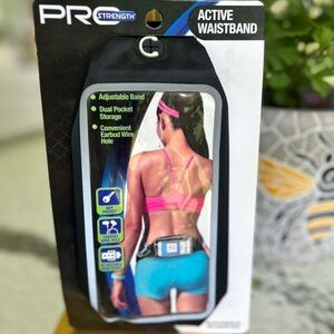 PR Strength active waistband with adjustable band. Features dual pocket storage. Convenient for holding essentials (phones) while active.