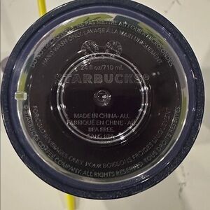 Elegant tumbler with a sleek purple body. Features a bright yellow straw.