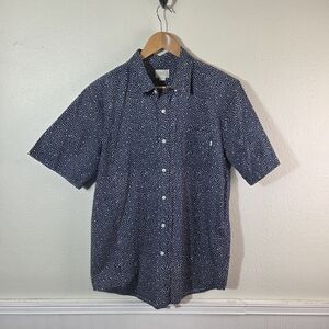 OBEY Navy Blue Polka Dot Short Sleeve Button Up Shirt Mens Large