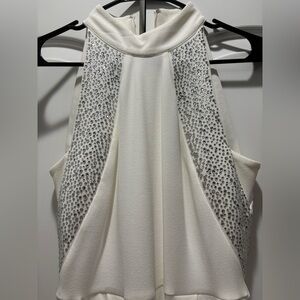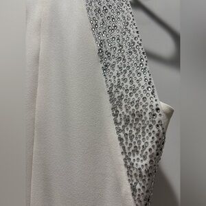 Step out in style with this elegant white jumpsuit. Perfect for any occasion, it offers a sleek and sophisticated look. Never worn before, It is a bit dirty on bottom from being in stores but that was how i bought it. Tags have been removed.