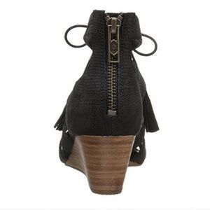 UGG Yasmin Snake Wedged Black Leather Sandals Sz 7.5 Fringes Shoelaces Boho