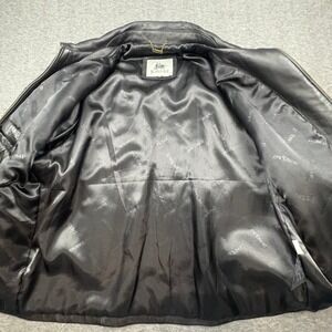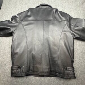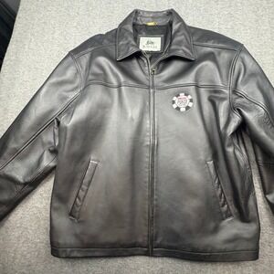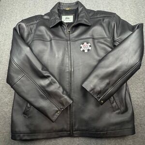 Burks Bay Mens XL Black Leather Bomber Jacket World Series Poker Patch Zip Up