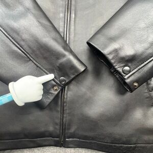 Pre-owned. Leather is super soft with very little wear. No cracks, tears, or dry rot. Zipper functions smoothly. Embroidered poker patch is intact and clean. Overall good wearable condition.