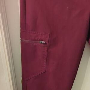 Comfortable maroon jogger pants with sleek silver accents. Ideal for everyday wear.