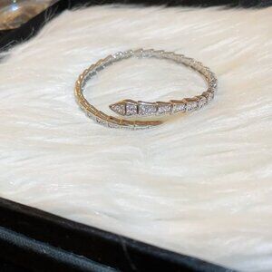 Adorable 925 Sterling Silver Adjustable Snake Cuff encrusted with diamond solitaire stones