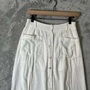 L*Space White Button Front Midi Skirt Women’s Size Small Boho Pocketed Slits