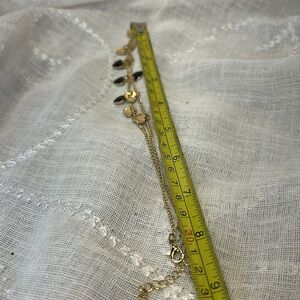 Elegant gold necklace featuring charming black heart pendants. Perfect for adding a touch of sophistication to any outfit. Preloved, see pictures for condition!