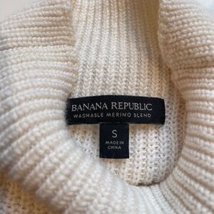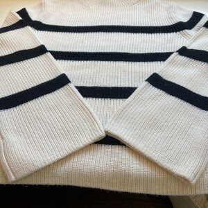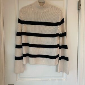Banana Republic-Merino Wool Blend Sweater-Bell Sleeves-Mock Neck-Mariner Stripe