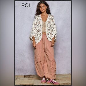 BP219-1🤍🤎NEW! POL pretty cream+tan/blush crochet open sweater perfect transition