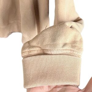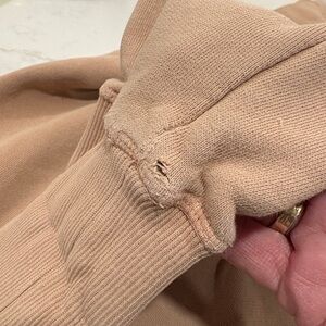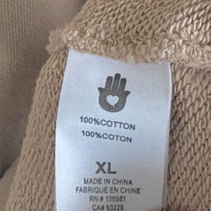 Good pre-loved condition; Tan cotton; small spot of discoloration at cuff as shown in last pic; pit to pit measures approx. 24“ across and stretches; shoulder to hem measures approx. 23“; smoke free home.