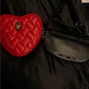 Kurt Geiger Red Quilted Heart Clutch and Black Leather Wristlet