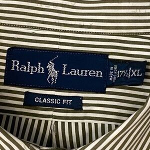 Vintage Ralph Lauren Classic Fit Green White Stripe Button Down Shirt Mens XL
