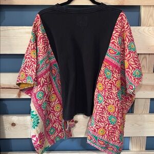 Upcycled RUN DMC T W/ Floral Kantha sleeves, by Susie.