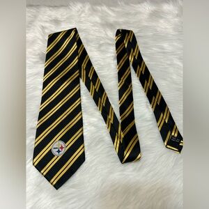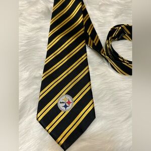 Steelers 100% Silk Hand Made Elegant Black and Gold Striped Tie
