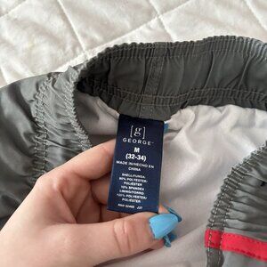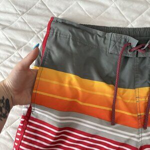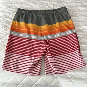 George Mens Size Medium Striped Red Stretch Swim Trunk Lined Pockets Summer
