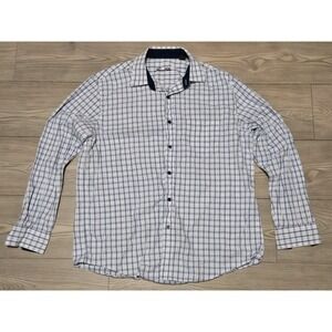 Tasso Elba Men's Blue Checkered Long Sleeve Dress Shirt Size Large 16-16.5