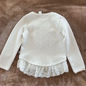 Dollie & Me Girls White Quilted Lace Sweater with Red Floral Accent Size 7