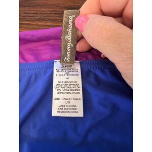 Featuring a sleek blue design, this Tommy Bahama swimwear bikini bottom is size large and features a flattering high waist. Made of durable nylon and lycra, it ensures comfort and style for beach or pool outings.