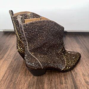 Jessica Simpson Oviedo Gold Bronze Rhinestone Western Booties Size 8.5