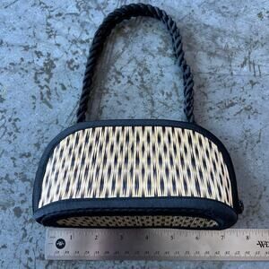 This Baskets of Cambodia handmade grass purse is so unique. Features a gorgeous black and tan woven pattern and double braided straps. Perfect for a summer festival or a beach day look.