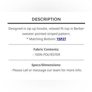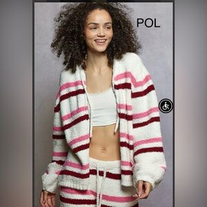 BP217-6๐๐คPOL pretty zip up hoodie in soft Berber! Features bold pink, white, and red stripes. Perfect day2date or fun weekend look!