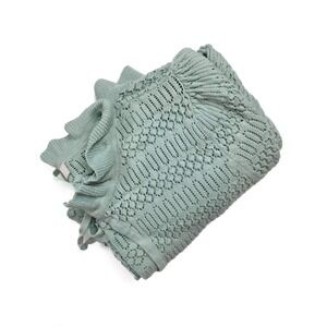 The LOFT Green Pointelle Tie Neck Sweater Tee Knit Top in women's size small is a stylish and comfortable addition to any wardrobe. Made from 100% cotton with an open-knit fabric, this pullover sweater features a tie neck neckline and puff sleeves for a trendy look.