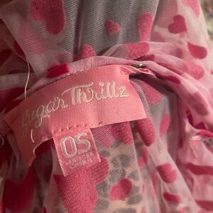 Rare Dolls Kill Sugar Thrillz Pink Heart Mesh Wrap Faux Fur Robe