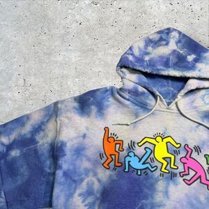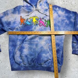 Keith Haring x Ripple Junction Tie Dye Hoodie Medium Dancing Figures Blue Sz M