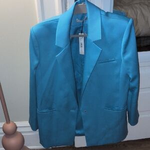 chic blue blazer. Perfect for any occasion, it is sleek and modern. slightly oversized. smooth fabric, some stretch. never worn, NWT, smoke and pet free