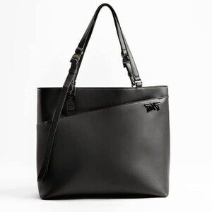PXG signature tote crafted from Desserto cactus leather, a plant-based leather alternative. Structured black tote with minimalist silhouette and PXG logo hardware. Designed for daily carry, travel, or work use. Durable, lightweight, and clean modern design aligned with performance-driven lifestyle wear. Unisex.