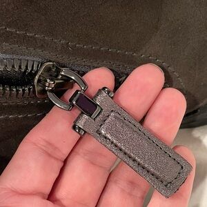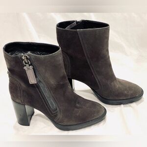 Aquatalia “Ilenia” Dark Grey Heeled Boots with Side Zipper. Metallic Accents.