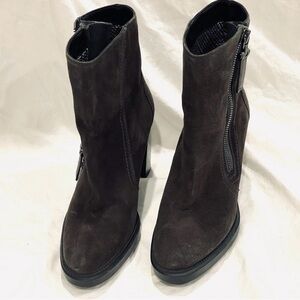 NWOT Aquatalia chunky high heeled boots, crafted in a rich gray hue. Featuring a convenient side zipper, these boots ensure versatility for any occasion.