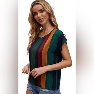 SHEIN Women's Cuff Short Sleeve Print Work Blouse Round Neck Shirt - S