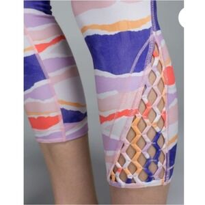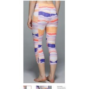 Lululemon Workout Capri Leggings High Rise Purple Orange Print Size 12