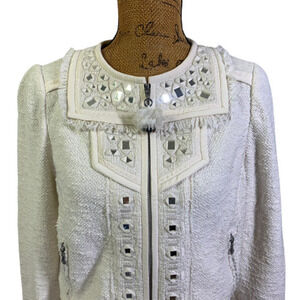 REBECCA TAYLOR White Mirror Embroidered Tweed Jacket - NWT