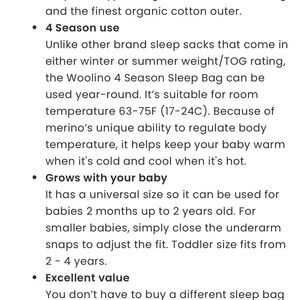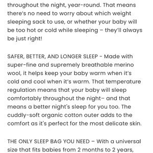 Best sleep slack made of wool - can be used year round. Still has a lot of life left for next baby but heavily discounted because of milk stains pictured!