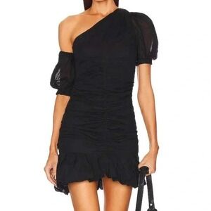 NWT Isabel Marant Etoile Lecia Black One Shoulder Ruched Mini Dress Size 42/10