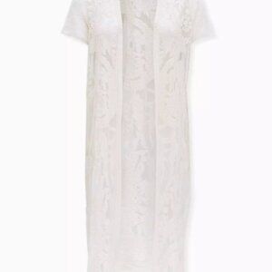 Torrid White Mesh Embroidered Longline Kimono Size 1/2