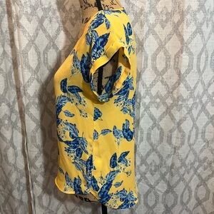 Color yellow with blue, pink and white floral print