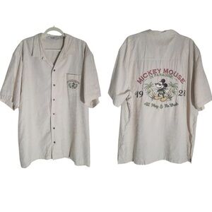 DISNEY PARKS Micky Mouse in Paradise Button Up Shirt Embroidered Resort Men’s M