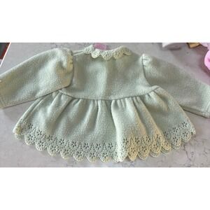 Baby Girls Mint Green Fleece Coat Jacket Floral Bows Scalloped Collar