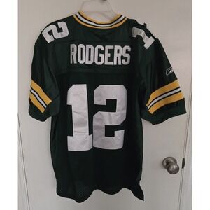 The product is a Men's Reebok Aaron Rodgers Green Bay Packers NFL football jersey in size 48. It is a featured item in the Sports Mem, Cards & Fan Shop category under Fan Apparel & Souvenirs for NFL football. Please see all photos as the item pictured is the item that will be sent. Feel free to ask any questions and thanks for looking.