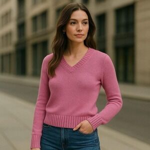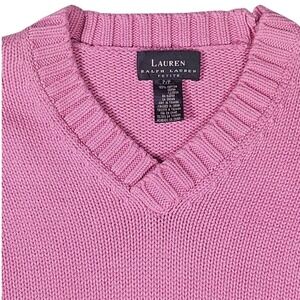 Keywords: Lauren Ralph Lauren, V-Neck Sweater, Pink Sweater, Cotton Sweater, Knit Sweater, Petite Size, Women's Sweater, Classic Sweater, Preppy Style, Casual Sweater, Long Sleeve Sweater, Ralph Lauren Sweater, Designer Sweater, Cotton Knit Sweater