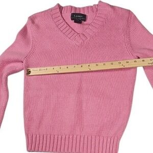 Lauren Ralph Lauren Cotton Knit V-Neck Sweater Pink Petite Size P/P